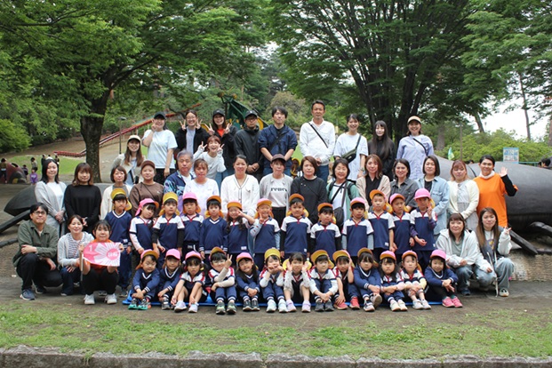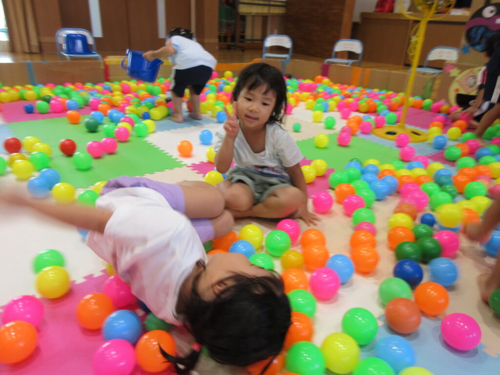 9:00ワクワクタイム(自由遊び)朝日を浴びながら外遊びをする時間をたっぷりとります